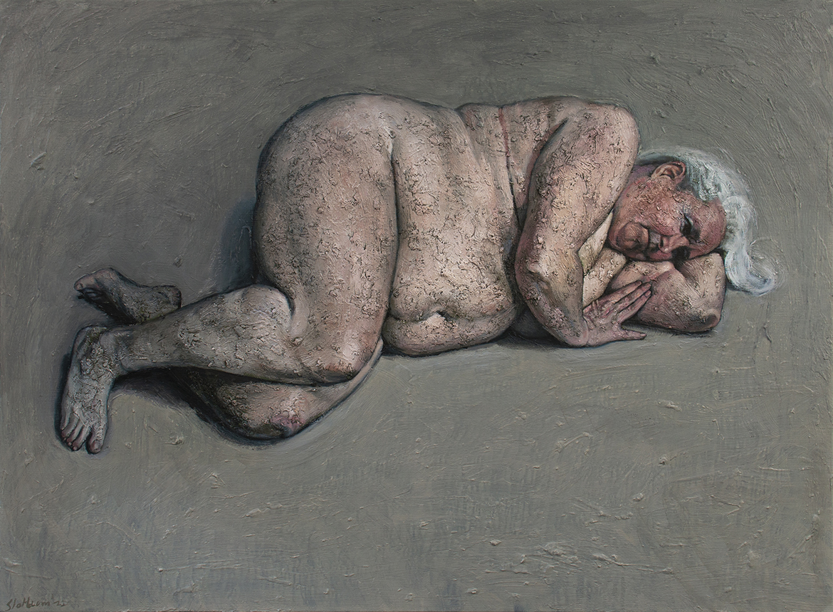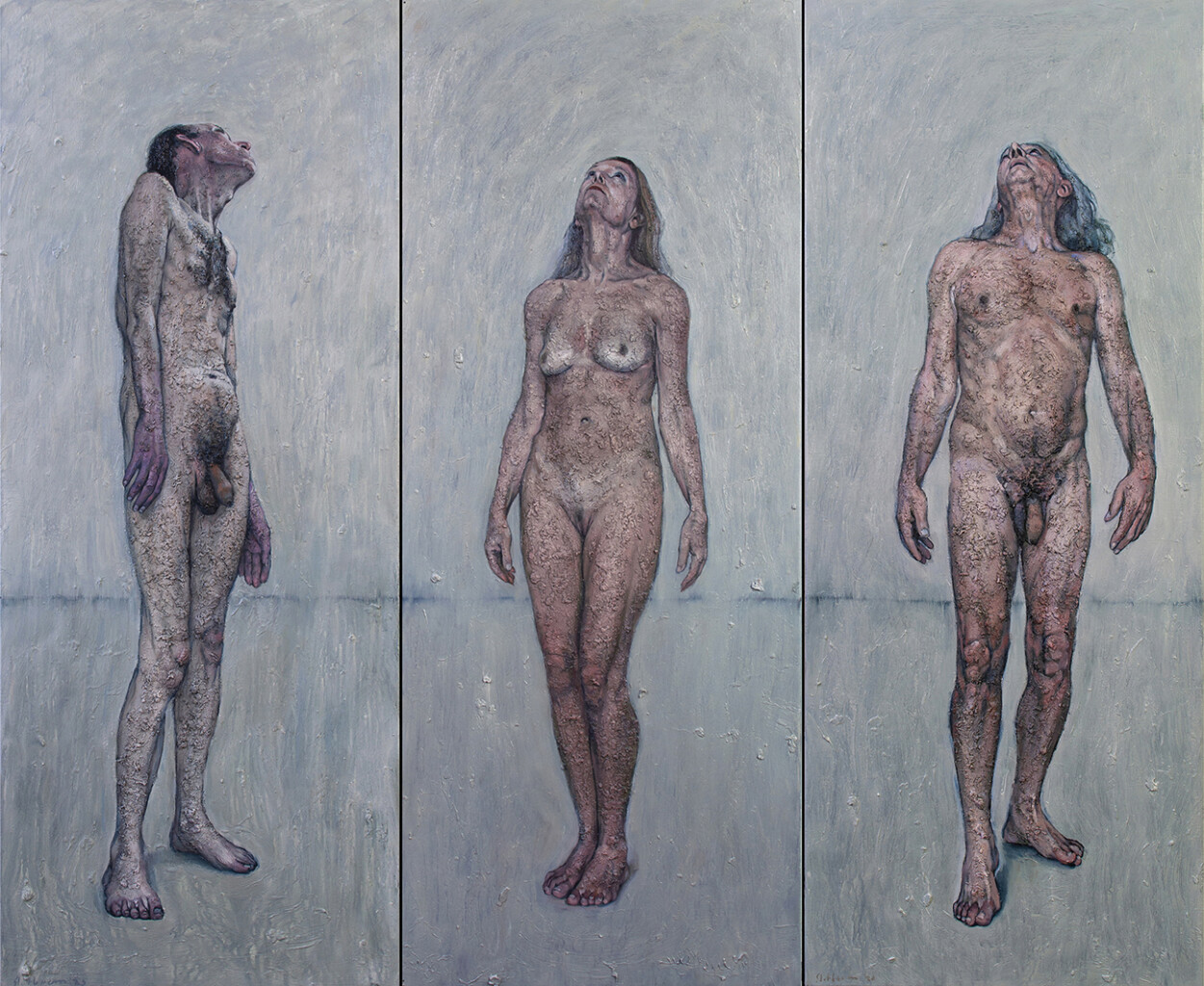 “In zijn schilderijen is altijd sprake van een spanning, die tegengestelde begrippen oproept; onbarmhartige schoonheid, beklemmende behaaglijkheid. Op levensgrote doeken schildert hij de mens in zijn naakte, onbeschermde kwetsbaarheid. Eenzaam, melancholisch, pijnlijk. Rauw en zonder opsmuk.