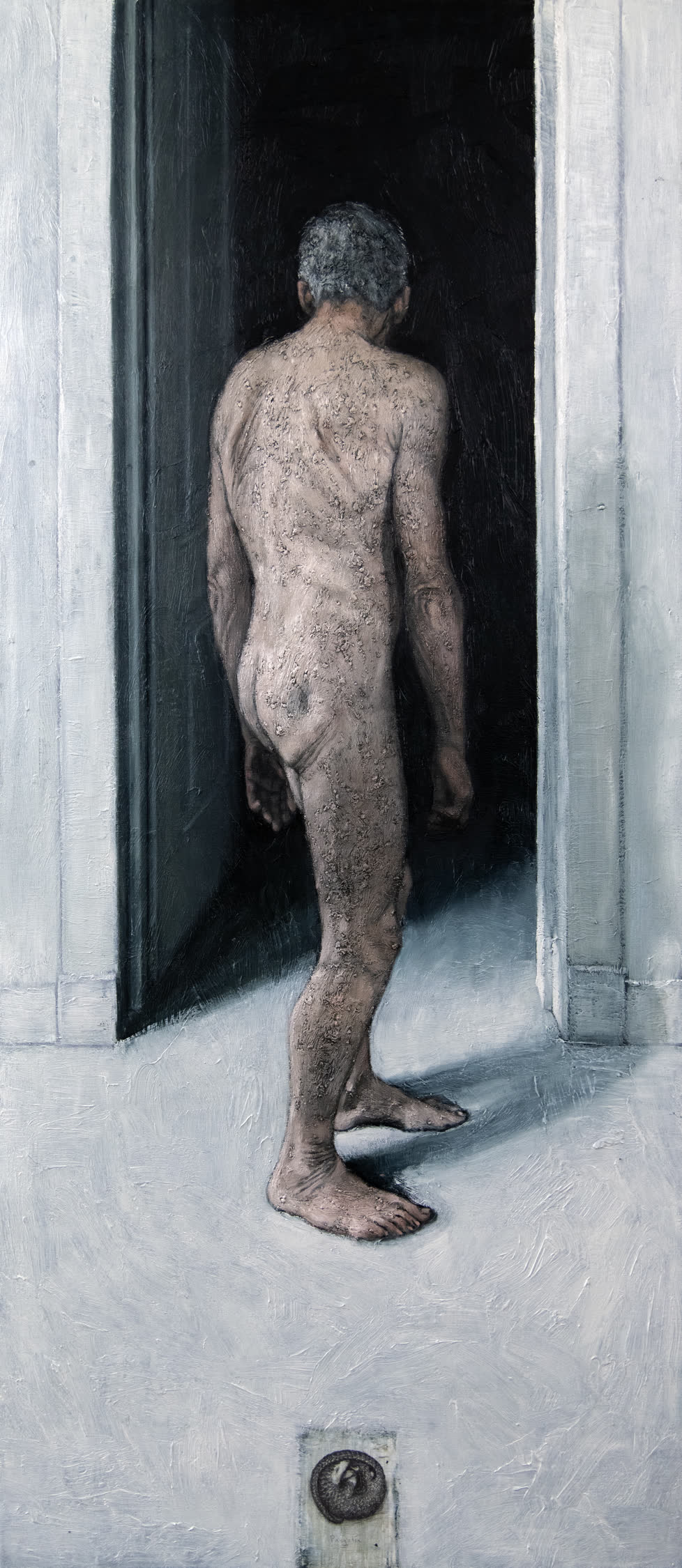Is onze geest of onze ziel waarneembaar in onze naakte getergde huid, ons vlees, onze botten? Jawel, de weergegeven mens (hoe vervreemdend bij wijlen) vertelt veel aan de goede beschouwer. Ze nodigen uit tot kijken, tot ervaren, gewaar worden. Gewaar worden wat we werkelijk zijn: tempels van kwetsbaarheid, eenzaamheid en sterfelijkheid … en van een onbarmhartige schoonheid.”
